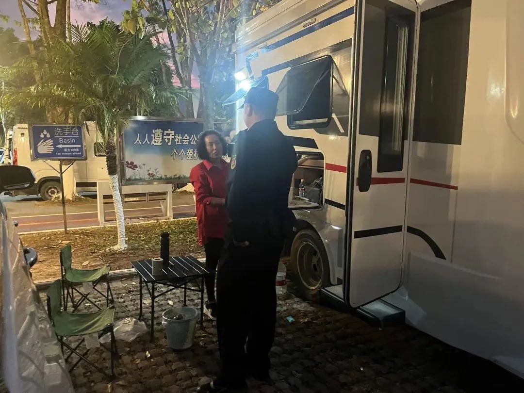 为确保市容市貌,县执法局针对房车游、野营帐篷游等规范劝导行动,对县城内各停车场和“七彩田园”停车场“房车”长期占用公共停车位、一车占多位、乱停乱放、占道堆物、煮饭洗衣、在公共绿化带内晾挂衣服等乱象进行了规范劝导。