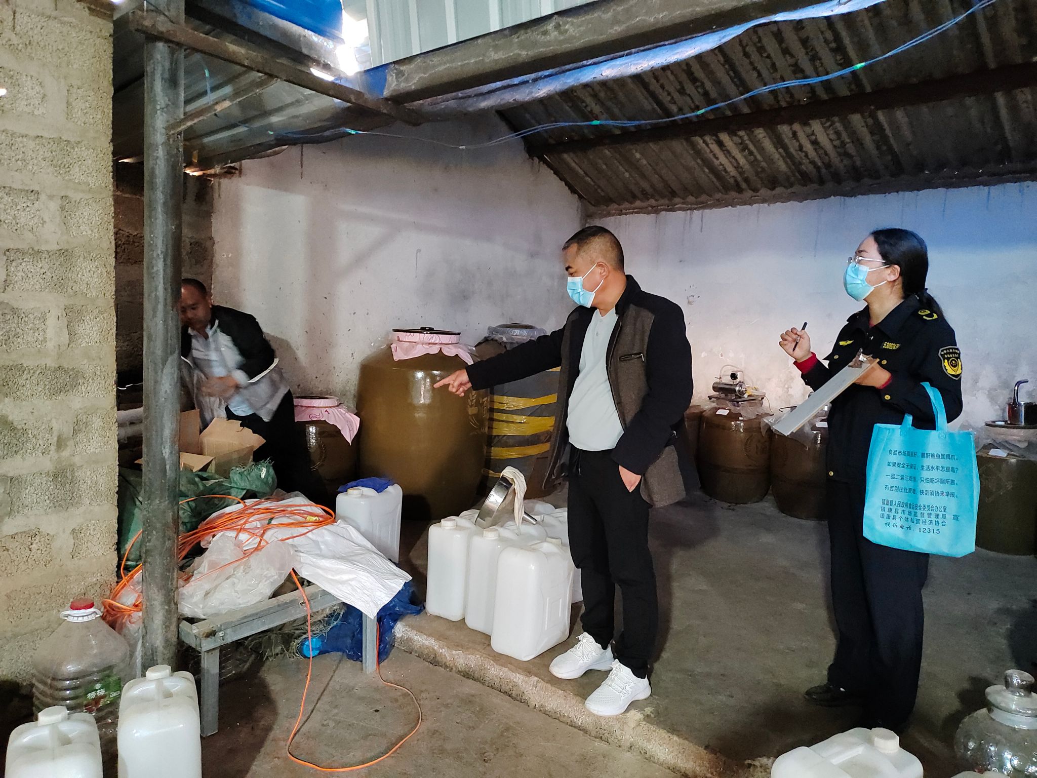 对白酒生产企业、白酒生产加工小作坊和散装白酒经营者(含供应散装白酒的餐饮服务经营者)进行检查,重点检查是否存在采购原酒、食用酒精生产白酒,超范围、超限量使用食品添加剂等违法生产经营行为,是否建立落实进货查验记录、生产销售记录、产品检验制度,产品信息标注是否规范;禁止提供销售无证白酒生产企业和未办理登记的白酒小作坊生产的白酒,严禁销售自制泡酒。此次专项检查共出动29人次,检查白酒生产加工小作坊16家,白酒生产企业1家,散装白酒经营者(含供应散装白酒的餐饮服务经营者)35家,对部分散装白酒生产经营者未严格落实索证索票、进货查验制度及标签标识不规范等问题进行责令整改。