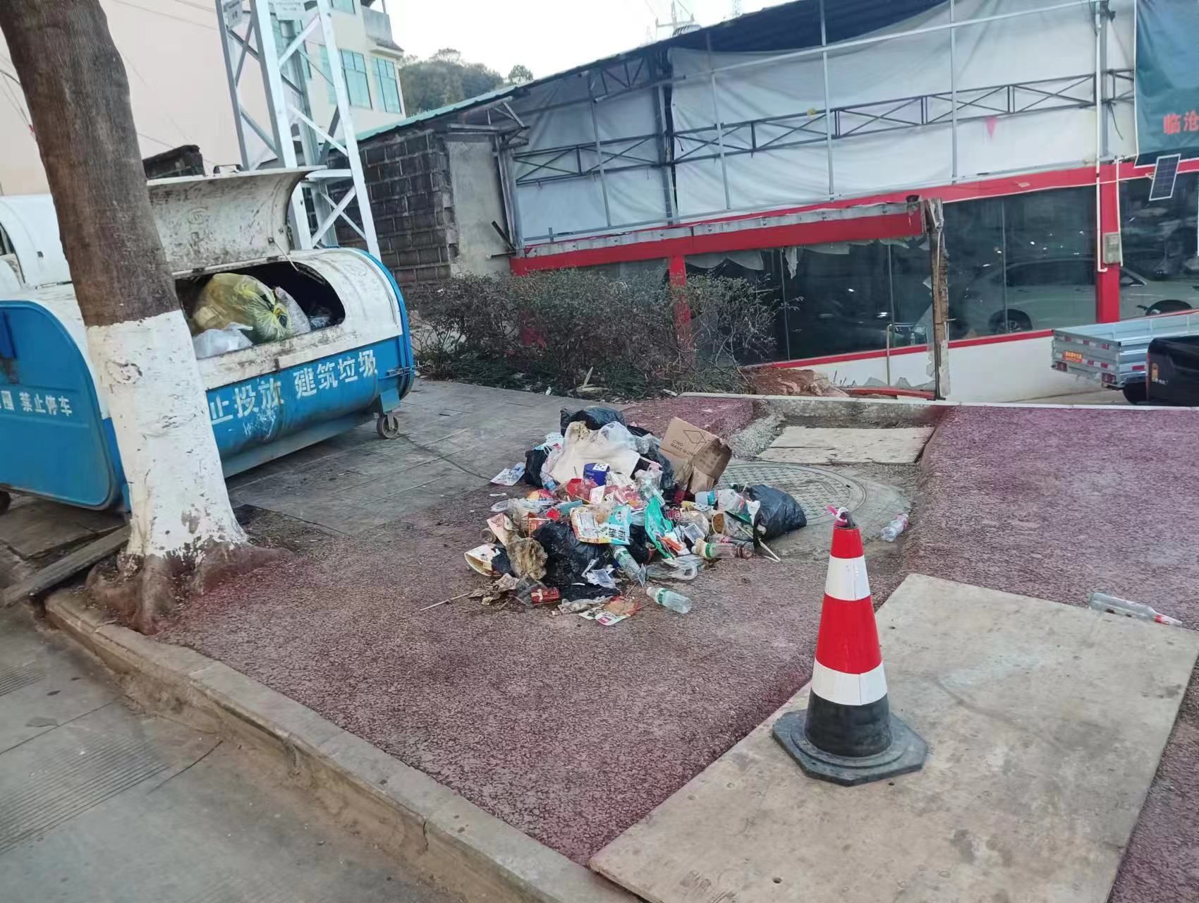 近期,我们发现有生活垃圾被直接扔在了垃圾箱外,而垃圾箱就在旁边的事例。