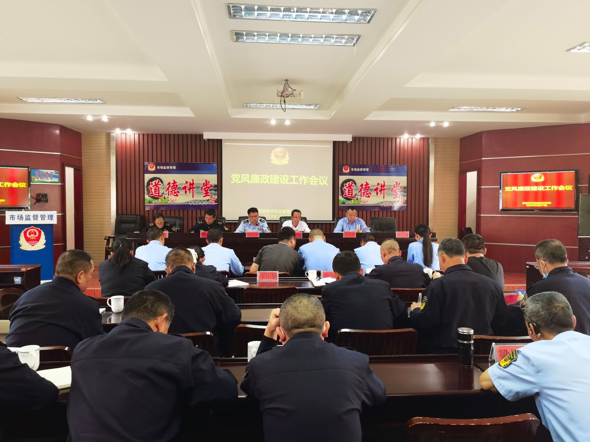 会议强调:坚持全面从严治党,坚定不移贯彻党的自我革命战略部署,深入开展党风廉政建设和反腐败斗争工作。一要扛牢“两个维护”重大政治责任,全面加强政治监督,全面学习、准确把握党的二十大精神;二要强化党风廉政建设责任制落实,深入推进全面从严治党;三要加大执纪问责力度,从严落实监督责任;四要持续纠治“四风”,营造风清气正的发展环境;五要加强学习教育,筑牢拒腐防变思想防线。坚持不敢腐、不能腐、不想腐一体推进,为市场监管事业高质量发展提供坚强保障。